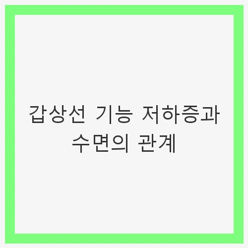 갑상선 기능 저하증은 신체의 호르몬 균형을 깨뜨려 수면의 질을 저하시킬 수 있으며, 이는 피로감과 우울감 등 여러 증상을 악화시킬 수 있습니다.